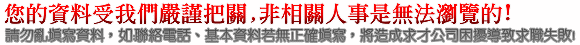 一:填寫錯誤的刊登資料或非完整之個人資料,或申請錯誤區域會員將造成求職或求才的困擾
